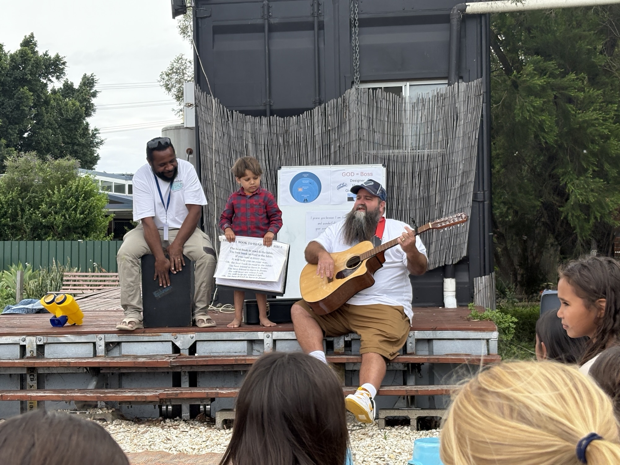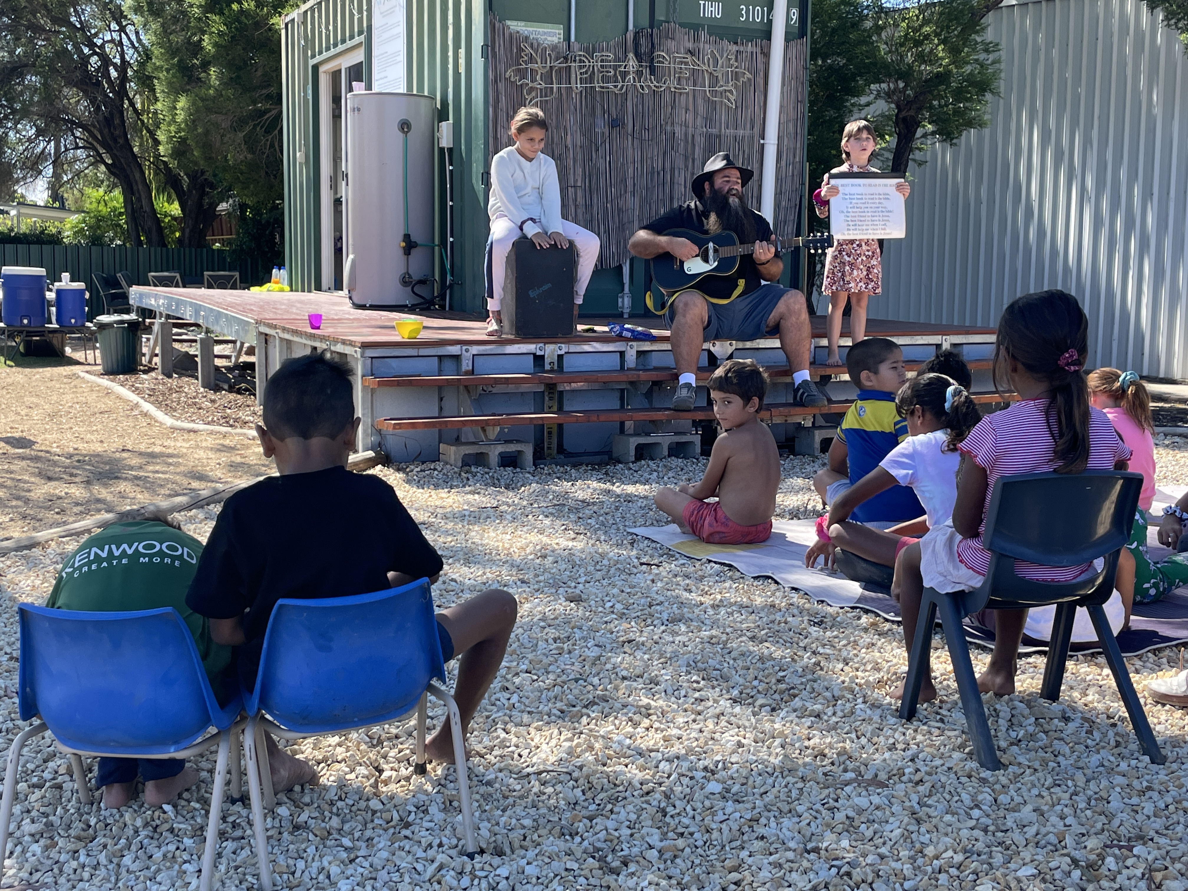 Each Sunday morning during school term anywhere between 30 and 50 primary school aged kids gather together to eat, sing and learn about God at the Community Centre. We head out at about 11am to pick up the kids who are wanting to come along, have some morning tea together, sing some songs, hear a lesson, have more of a play and then head home about 1pm.